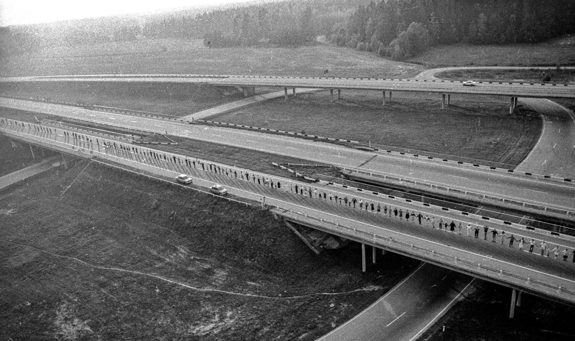 The 1989 Baltic Way human chain of around 2 million people across Estonia, Latvia and Lithuania, together protesting about being occupied and annexed by the USSR